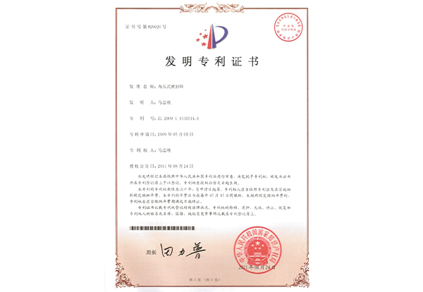 内压式密封环 发明专利证书