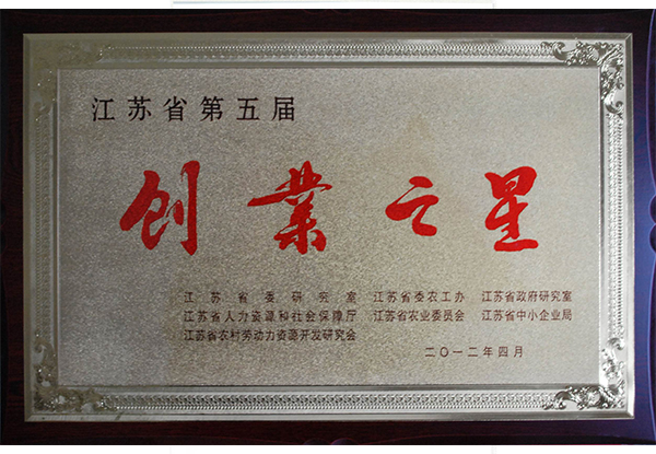 江苏省第五届创业之星证书
