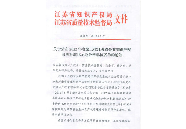 江苏省知识产权管理示范单位