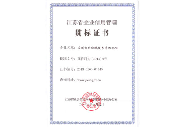 江苏省企业信用管理贯标证书